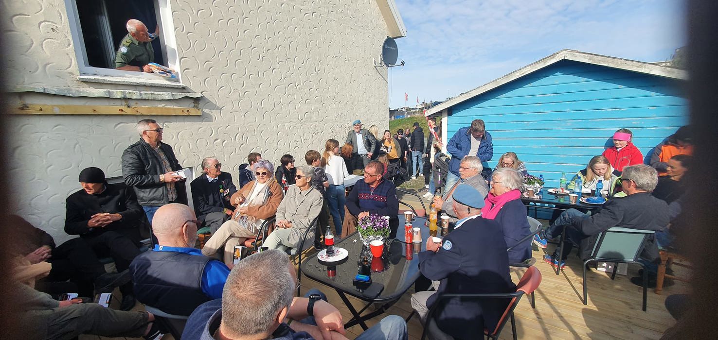 Etter 2 år med avlyste eller digitale arrangement, kunne vi endelig samles. Første veterandag med eget Veteranhus. Det måtte vi markere. Bedre anledning til å innvie plattingen og bålpanneplassen fra midler av Gjensidigestiftesen finnes vel heller ikke. Vi var så heldige å bli sponset fra det lokale næringslivet med mat, drikke, is, kake og gaver. Fullstendig liste over sponsorer finner dere på: https://www.veteranhuset-haarfagre.no/. Hyggelige naboer lånte ut parkeringsplass og plen til oss. Til å være første 8 mai arrangement på huset og et besøkstall vi ikke drømte om, ble det en suksess. Dette må bli en tradisjon. Ikke sikkert gavebordet blir like stort og variert neste år, men vi vil prøve. Arrangement komiteen bestående av Helge, Helene og Jarl-Oluf, er godt fornøyd med resultatet av dagen. Takk til alle som kom, ville ikke vært like fin dag uten dere.